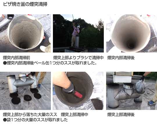 メンテナンスをしていない煙突は内部にススやタールが付着し、そのまま放置しておくと、煙突内部で燃え上がり、非常に危険で大きな事故にもつながります。一般的な薪ストーブの煙突から店舗等の高所煙突まで、