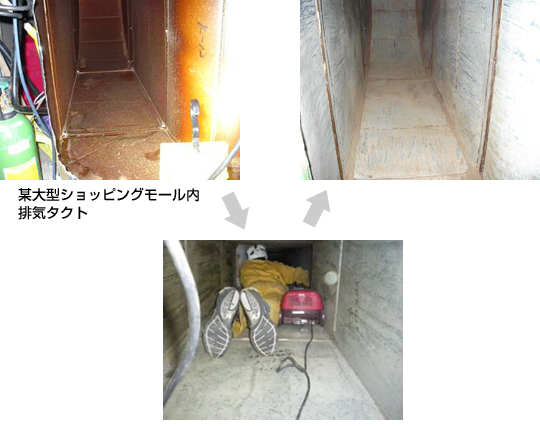 厨房の排気ダクトは、気付かない間に油汚れが付着します。 排気ダクト内の油汚れに調理中の火が移り、火災の原因になります。 火災を引き起こさないためにも、 定期的な清掃が必要となります。