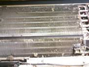 エアコン内部(熱交換機)油、ホコリ、カビの汚れでいっぱいです。