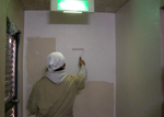 ●地下通路は清掃後塗装をしました。塗料に超強力防カビ剤を混ぜて塗装しました。通路を明るくしたいと言う 組合様より要望があったため、白色に塗装しました。 |
