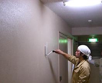 ●塗装をしない箇所は、ダイヤモンドマジィックを塗りました。高い箇所はロングポールを使い塗布しました。 高所ガラス清掃で使うポールを利用しました。 当社の清掃技術の応用です。 |